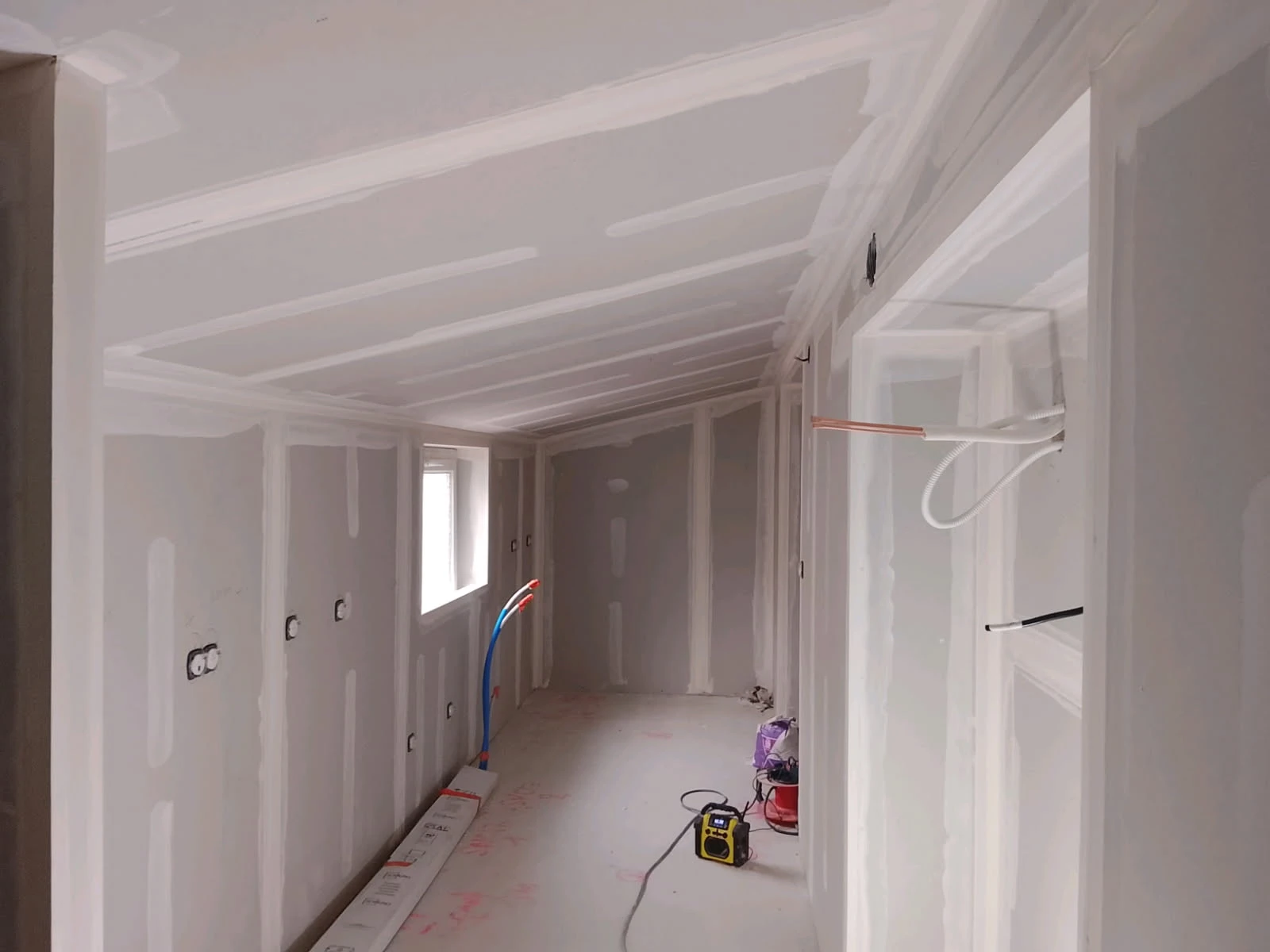 Au programme, isolation complète des murs périphérique, cloisonnement coupe-feu 1h et phonique, menuiseries intérieurs CF 30min avec châssis vitrée, portes à galandages, salle panoramique radiologique avec placo plomb 2mm, porte plomb avec oculus rond, faux plafond en dalle 22mm 60x60, des centaines de mètres de bandes à enduire, et plus de 1000m2 de placo posé...