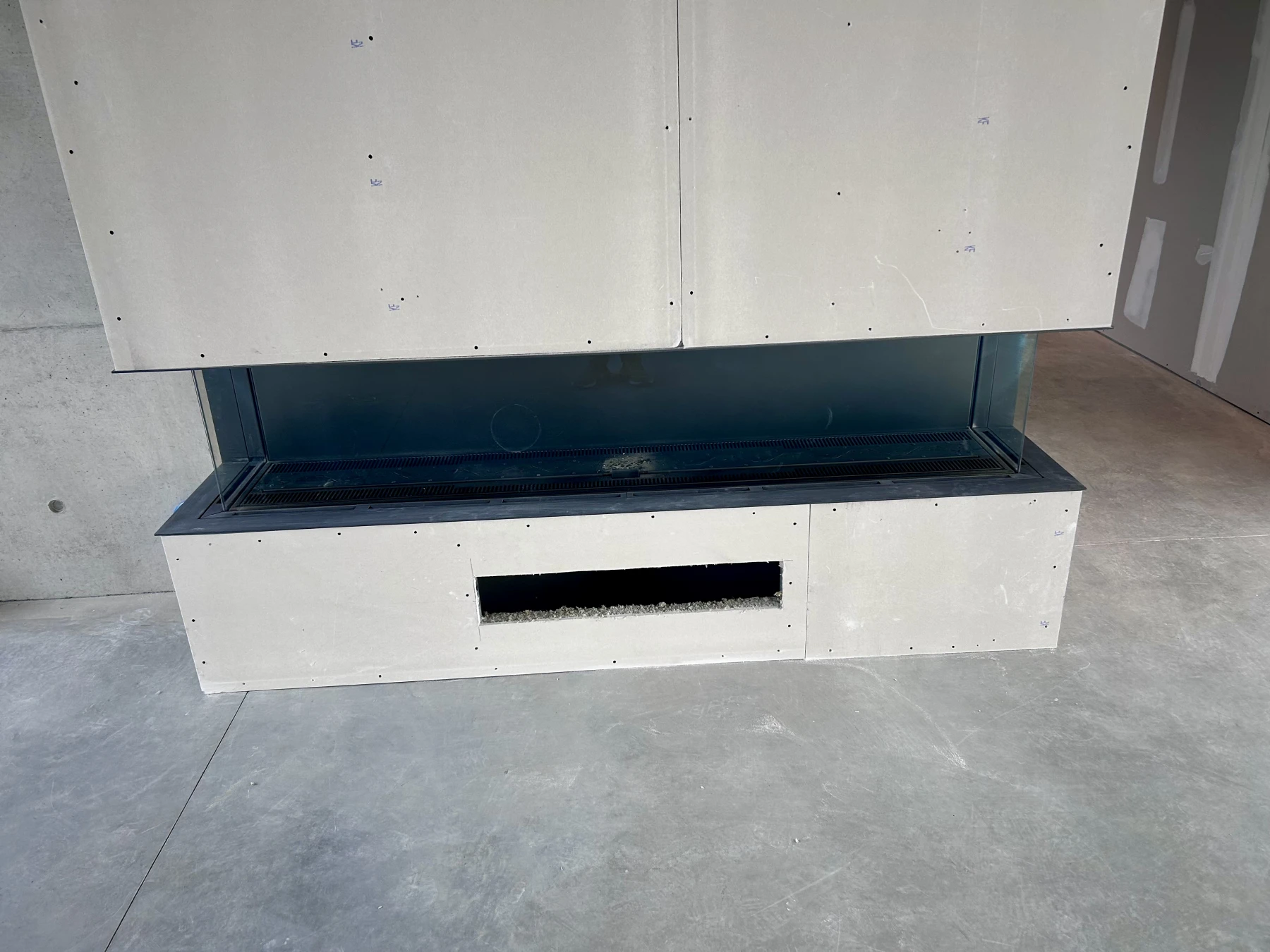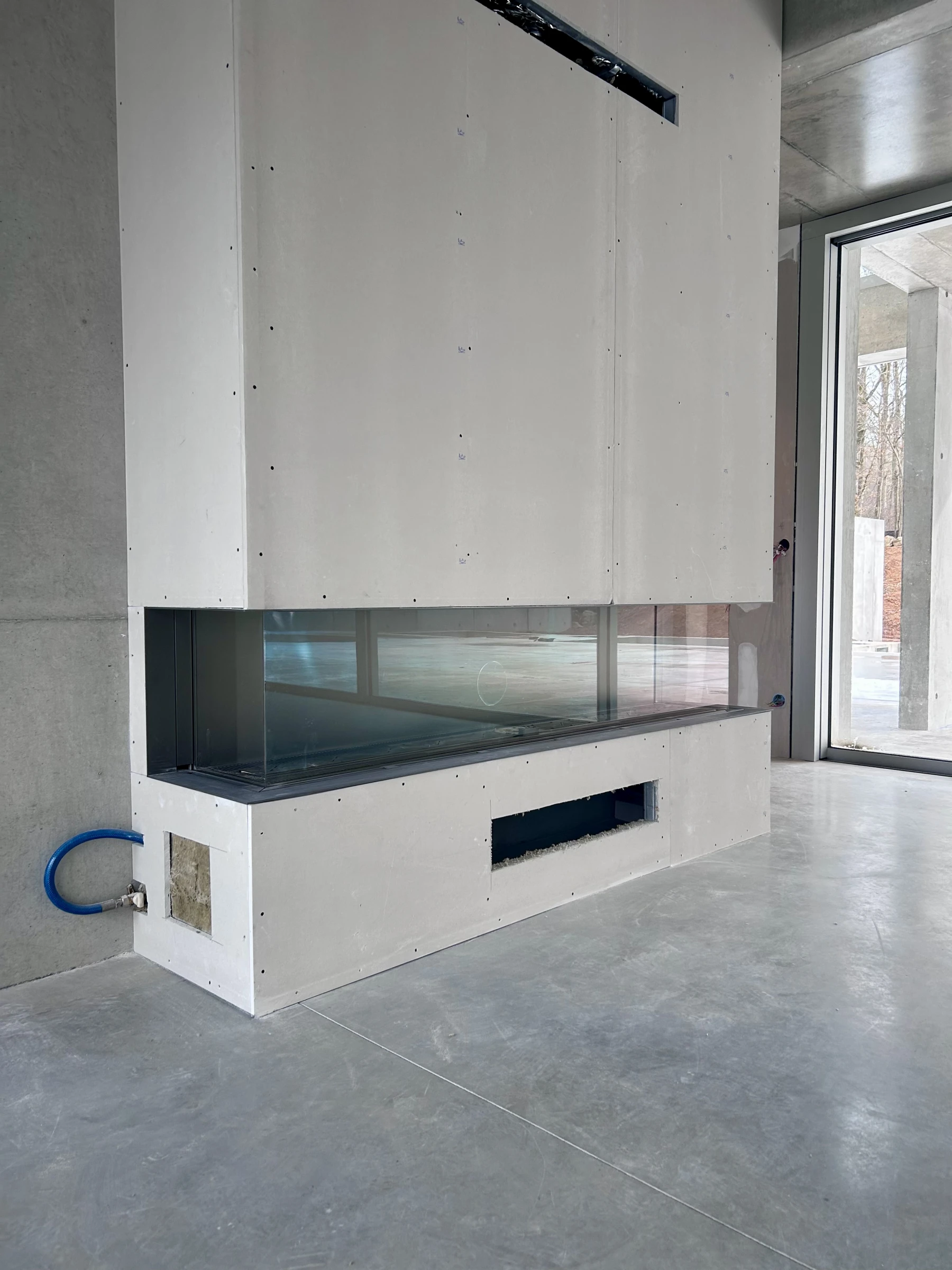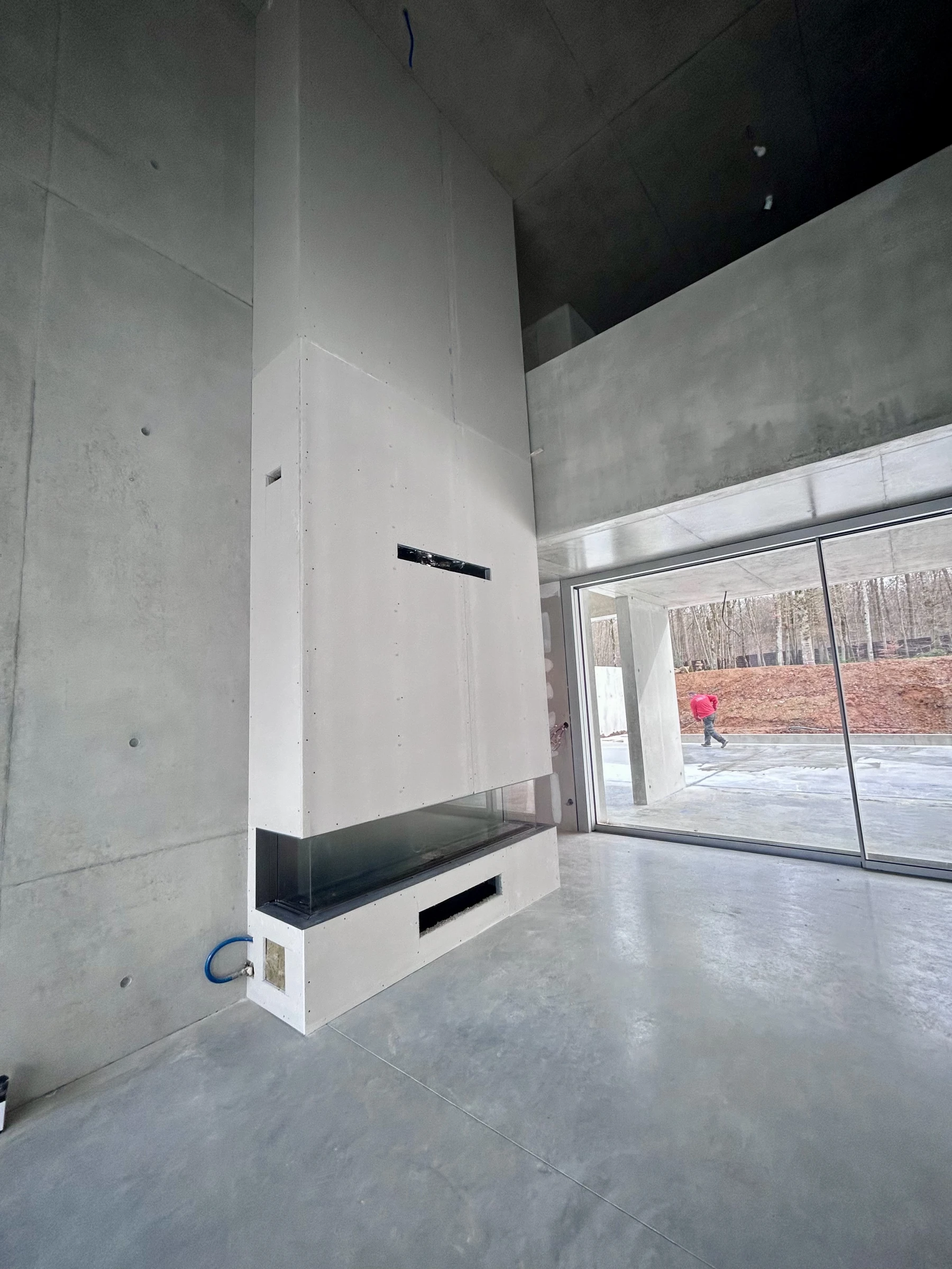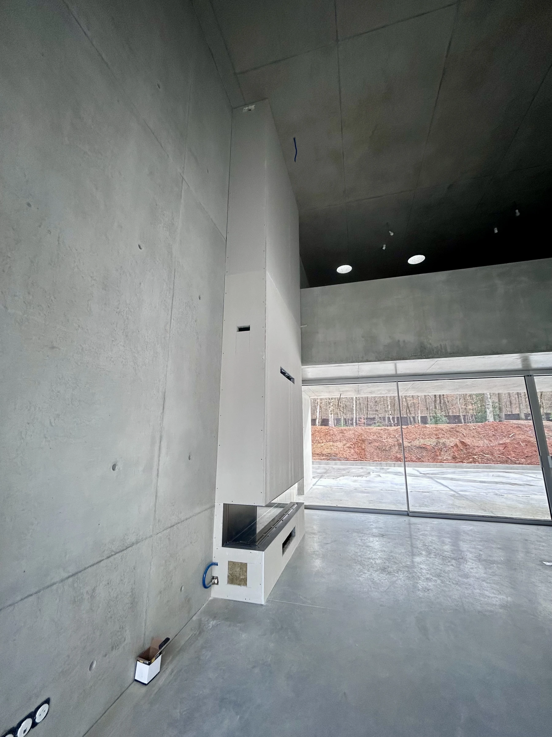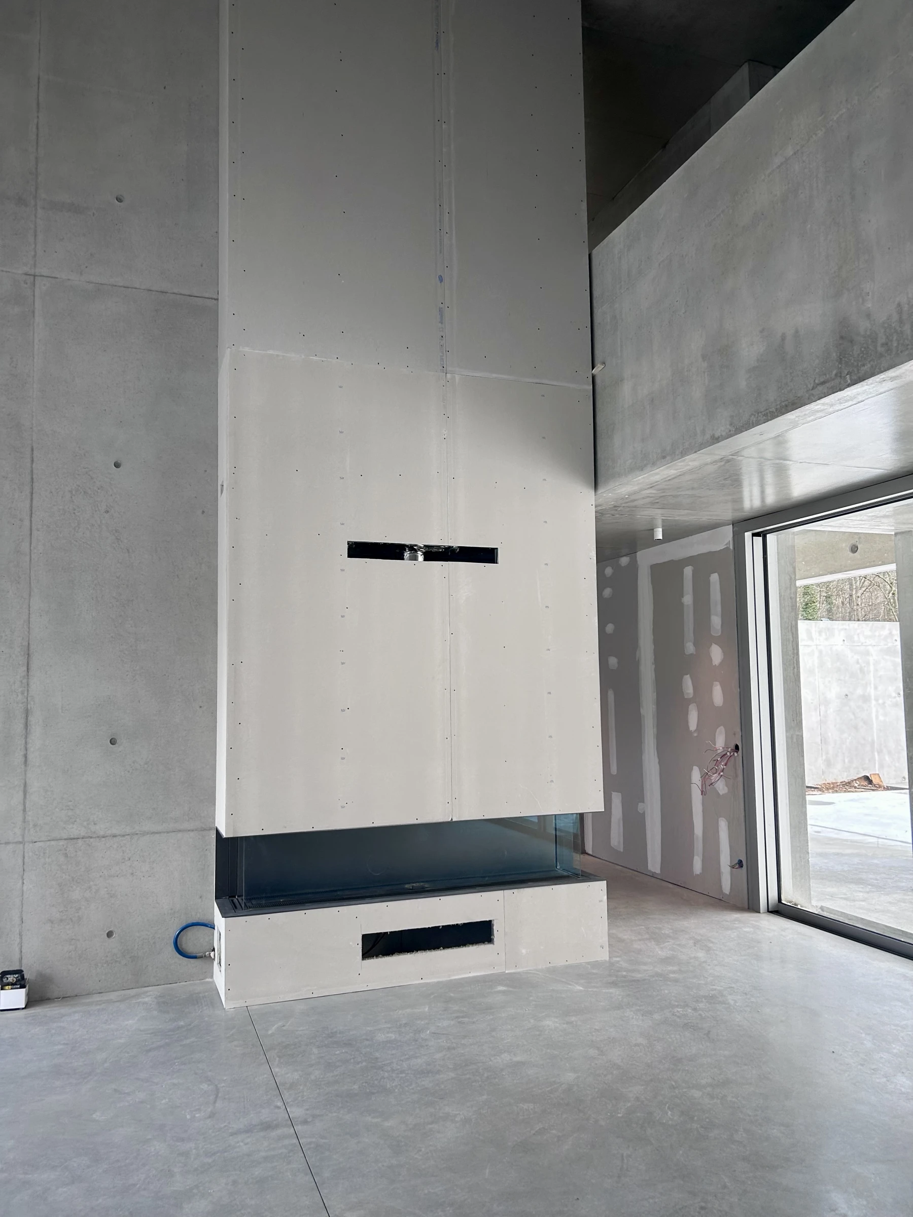 Placo M0, laine de roche calaminée, hauteur sous plafond de 7m, en collaboration avec Julien Campus ( BOA Architecture), le placo complète l'esprit "béton" de ce beau projet.